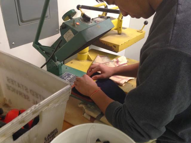 They had a vinyl cutter and here is someone using the heat-press to press vinyl onto fabric.