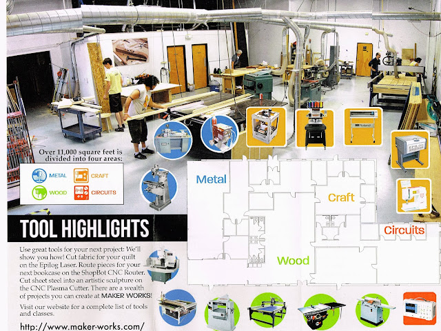 I was completely blown away with Maker Works! Of course the equipment was cool but what made a really great impression on me was meeting one of the founders who was super nice and took the time to talk to me. The employees were nice too! Also, they have a large conference room with tables you can use for free to host a group (if you’re making something) and it’s also a place where they meet once a week and everyone can bring their projects they’ve created to show-off to everyone else. What I absolutely loved the most was their ‘job board’ where you could do jobs around the shop to pay for your membership if you couldn’t afford it. I believe each hour of work equaled $9 toward your membership.