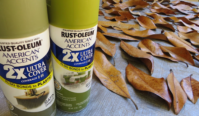 Lay your leaves out on a large surface – I keep an old tarp handy for spray-painting projects.  These are the 2 colors I purchased and they were just right!