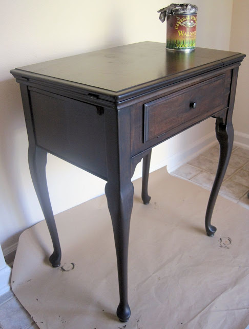 I got a sewing machine in a little cabinet for $25 the other day. I was loading it up in my van and the lady asked if I wanted to take a look at it first. I replied, “no… It’s only $25”! Once I got it home and took a better look at the cabinet I realized it was in worse condition than I thought. The veneer was peeling up in many places and needed a lot of gluing. There was a large piece of the veneer missing on the top that I had to patch (and it still wasn’t pretty). After gluing I saw other areas, like joints that were failing from being exposed to poor conditions. I worked a little bit more and began sanding. I wasn’t taking the time like I usually do to make sure I was sanding all the surfaces perfectly and I didn’t remove any hardware to truly restore. After sanding, the cabinet was looking pitiful. I began to think “is this even worth my time?” I decided since I had already done so much I would just go with it and see how it turned out. I didn’t even try sanding the heavy scratches out of the top or the water ring from a cup (that looks like it had been sitting there for months). I dipped my rag into a can of stain; with the first pass I quickly began to see the beauty in the wood again. It didn’t take much, just 10 minutes and it already looked so much better. I did another pass with the stain and I began to appreciate the imperfections of the cabinet. I saw the flaws and details that weren’t perfect anymore due to being mistreated, forgotten in a garage for many years and the toll the climate took on the wood. I appreciated those imperfections more because it showed the life it lived and what it had gone through. It breathed new life again and I became deeply humbled that I had taken a short time to show some TLC – because in the end I’d prefer to have this cabinet in my home than a new one from the store!