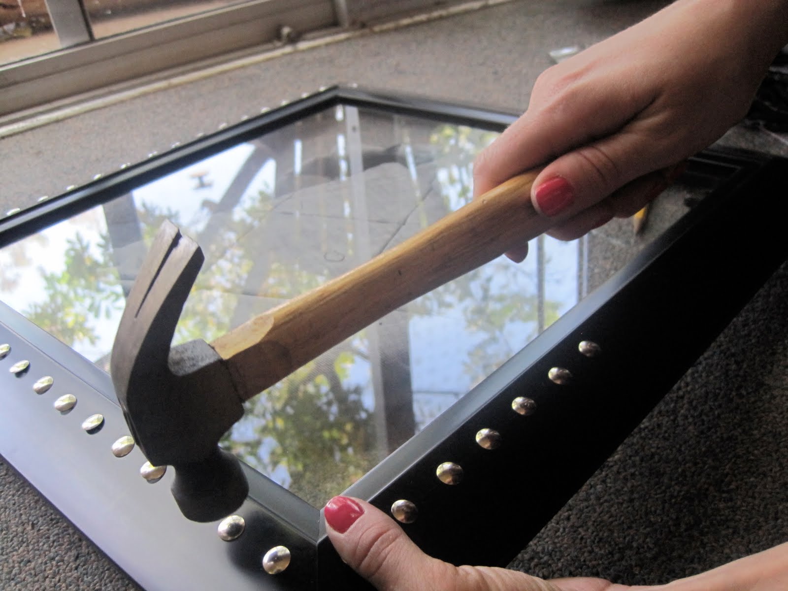 Once all the tacks are in, lightly tap them with a hammer to push them in flush with the frame.