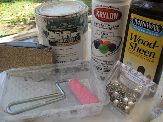 Materials: Picture frame, ruler, pencil, thumb tacks, hammer, paintbrush or roller, paint, wood stain, gloss paint (optional), and sand paper.