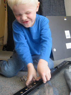 If your son wants to help out – handing the tacks to you one-by-one is fun and safe! He may want to try and push one in himself!