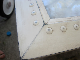 Once your paint is dry you can rough it up with sand paper. It’s hard to ruin a perfectly good paint job, but once you get started it looks REALLY cool! I like to sand over the studs and all the edges I can get to with the sand block.