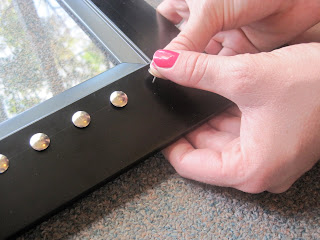 Press the thumb tacks in over your markings. I used my thumbs for this although it hurt – it ends up being easier than a hammer. TIP: Keep your hands under the frame so the pressure you put on it doesn’t put any strain on the frame which might cause it to crack or break!