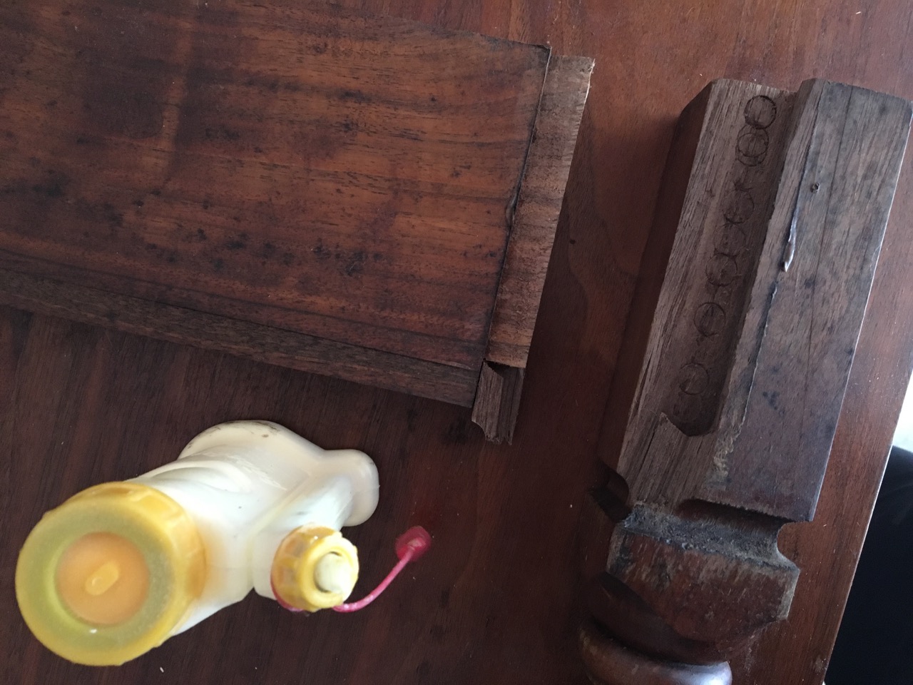 Upon closer inspection I saw that several of the original joints in the wood were separating in a few areas (see the top-middle area?).