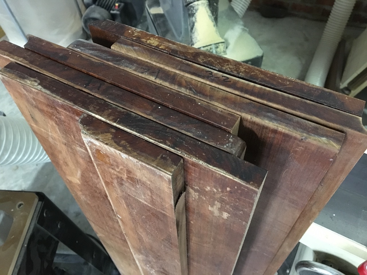 I made the hard decision to cut up all 3 of the large wood panels so they could fit through my planer. I did this so I could re-glue the joints by cutting down the center of them, but also so I could fix the panels that had a slight bow to them.