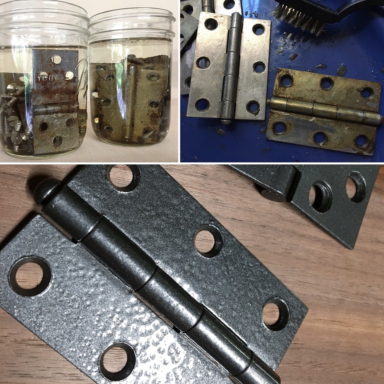 I removed all the hardware, soaked in vinegar to clean, scrubbed/dried and spray painted to keep from rusting (plus I love dark hardware)!