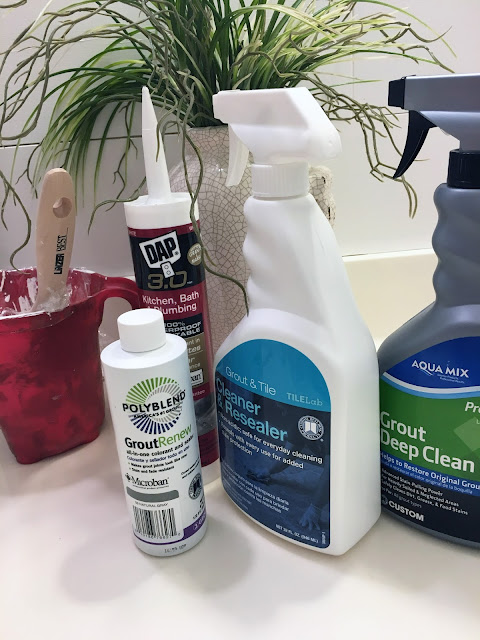 It’s the weekend so I didn’t do too much.  I bought some supplies for coloring the grout.  I decided the yellow pee-stained grout wasn’t going to work for me anymore (I’ve already tried soaking it with bleach and other cleaners)… all these products were about $40 😳 – but totally worth having nice grout, right!?