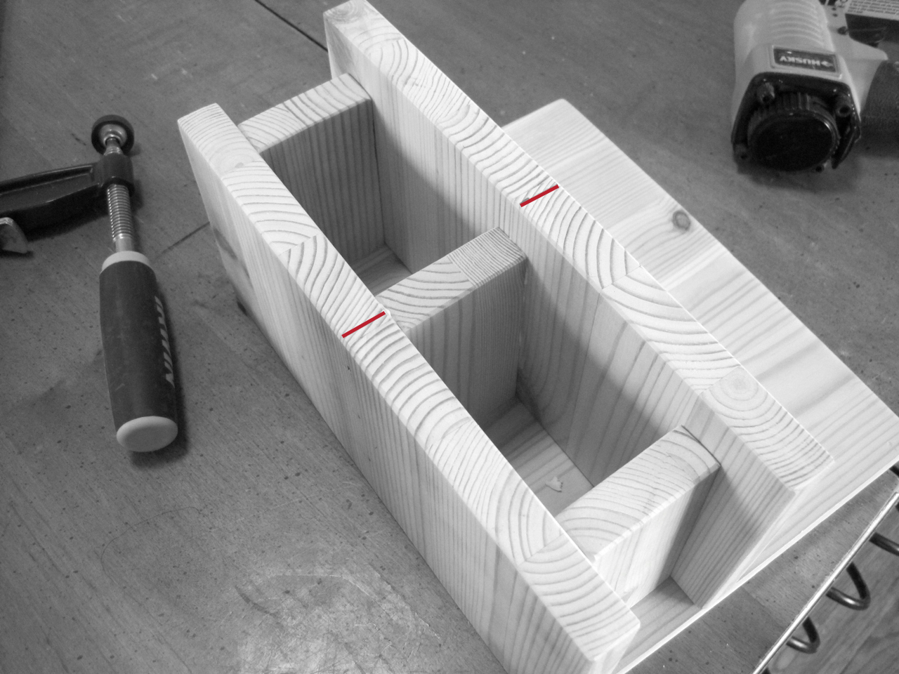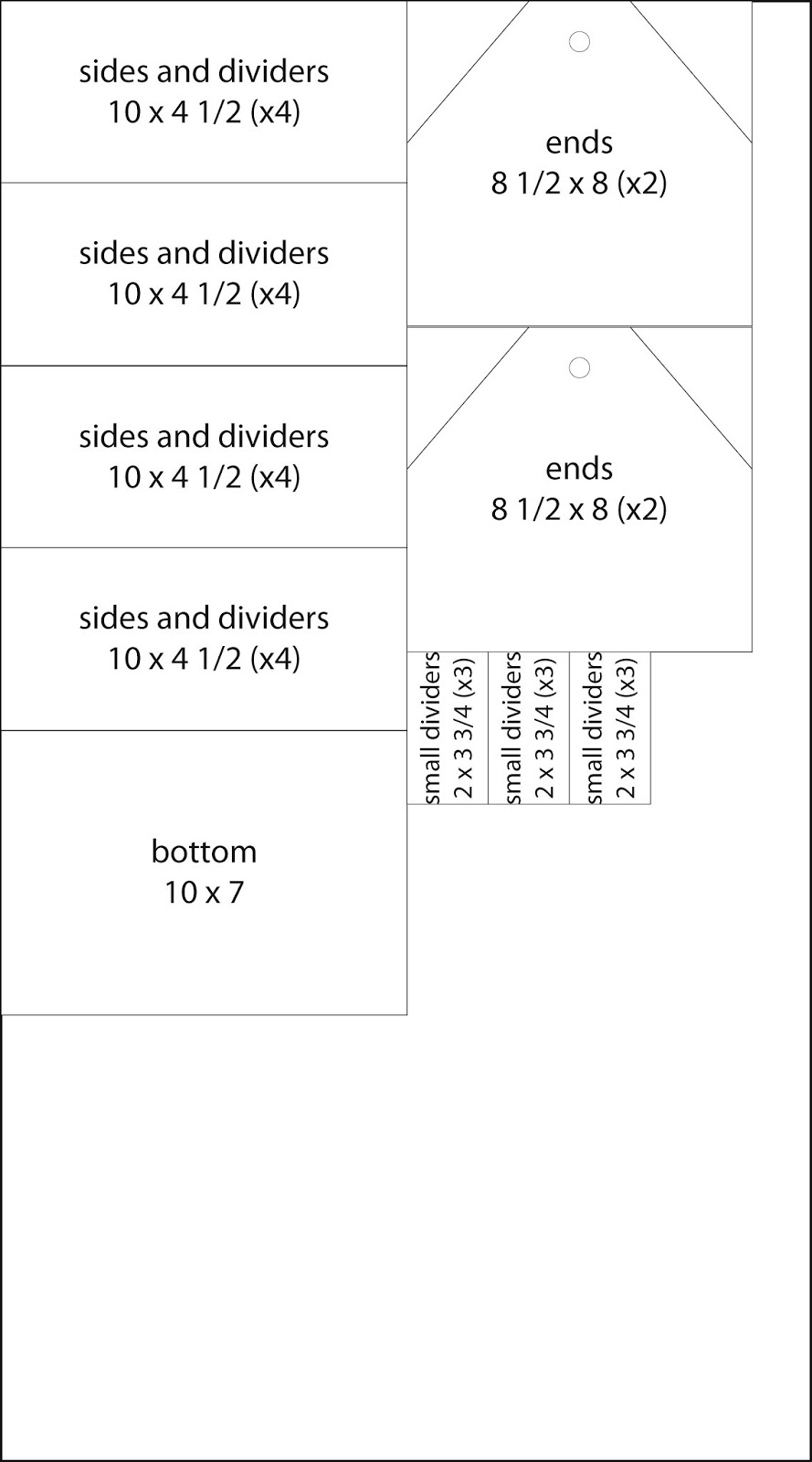 Step 4 – set all your pieces up and double check everything fits and looks good. Your small divider pieces should be aligned with the marks on your side and divider pieces you made in Step 1.