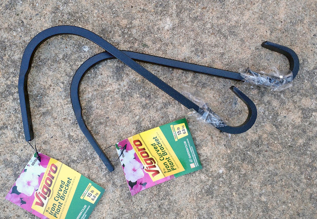 …plant brackets! I knew if I spent enough time at Home Depot wondering the isles I would find a solution. Well, there you have it – outside on a shelf I found these little beauties! I tested how they held on the edge of the shelf and they balanced perfectly and weren’t going to budge. I actually bought 6 thinking I would hang each individual stocking from one but after setting up my nativity I worried how my SIX brackets would interfere with everything, not to mention they were overkill with their thickness/weight for holding one stocking. I eventually had an ‘a-ha’ moment!… use 2 brackets with a rod of some sort between (curtain rod, old broomstick.. whatever you have)!