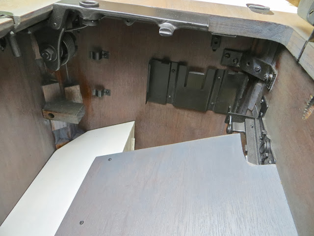 A piece of wood was broken so I cut a new one.  My plywood was thicker so I had to sand down one edge to fit into it’s groove in the cabinet.