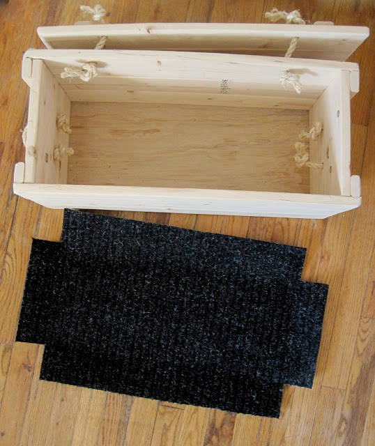 1 1/2 feet of rug mating (with rubber backing for waterproofing box). I bought mine at Home Depot in the carpeting section for about $4 total.