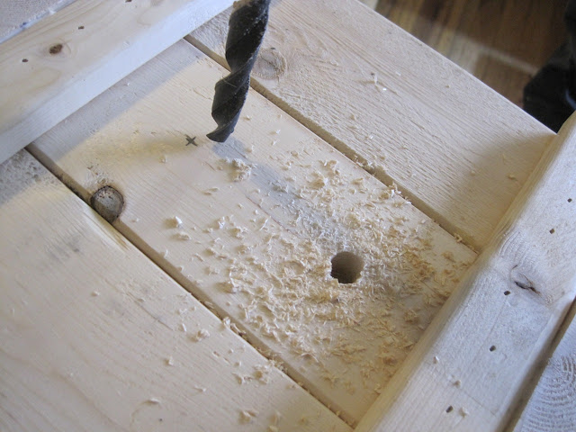 Use your drill and 15/32 drill bit to drill each hole. You may want to drill a smaller pilot hole to make drilling your large holes easier.