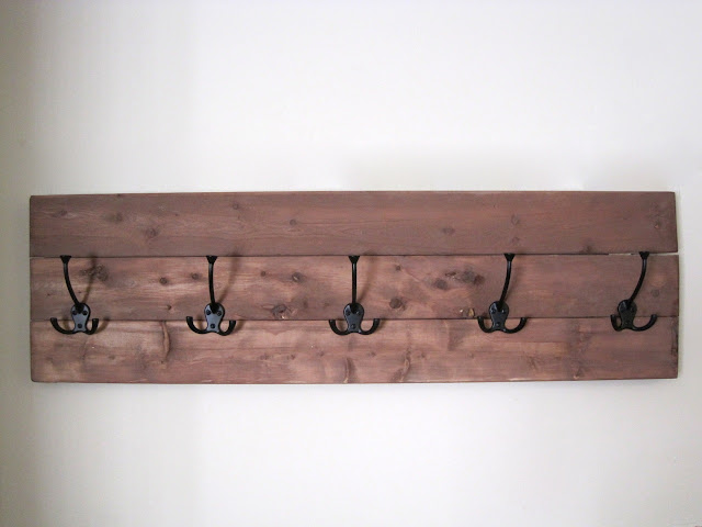 Step 2 – Turn the boards over and place your hooks where you want them. Make sure they’re evenly spaced and straight. Mark where your screw holes need to be and pre-drill holes.