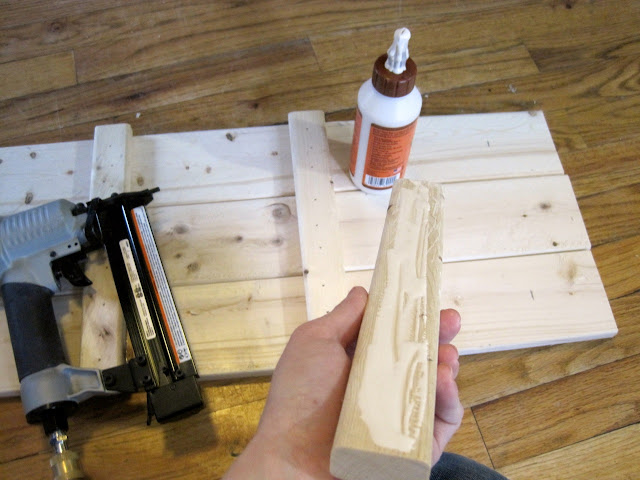 Step 5 – Align, glue and nail your last routed 24″ (1×4) board to the end with your panel. Align, glue and nail your remaining 2 – 24″ (1×4) boards.