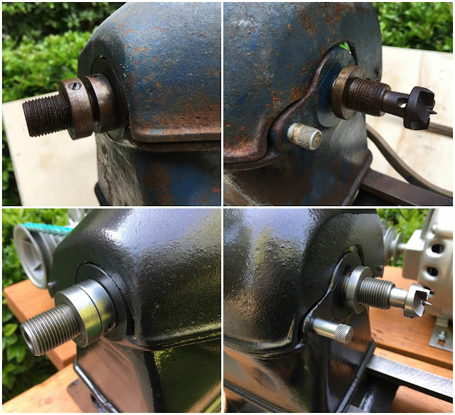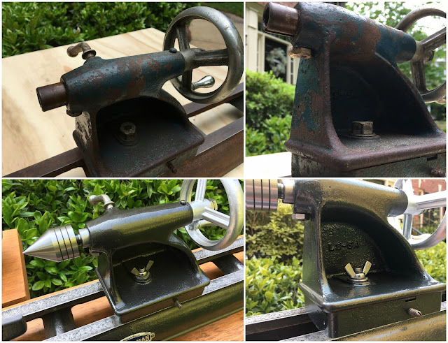 This little lathe was a really easy restoration because it really is so simple. The results come quickly because it is so simple – I wish you luck! As for the center – I believe the original would have been a dead center which you wouldn't want anyways. You'll want a live center, meaning it spins with your wood. I got mine for $25 on Amazon. Any 1MT center would do but I was happy with the price and quality! You're welcome to e-mail me anytime with questions!