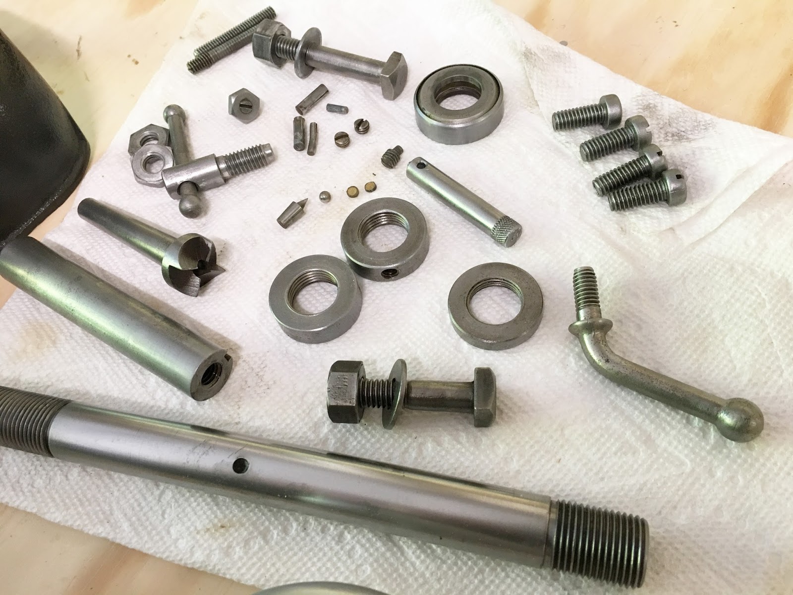 All my small parts are rust free and ready to go! I sanded the smooth metal areas with 800 grit paper and rubbed everything down with WD-40.