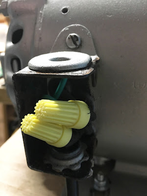 I grounded the green underneath the screw on the wire casing and used wire nuts to secure new wires with motor wires.