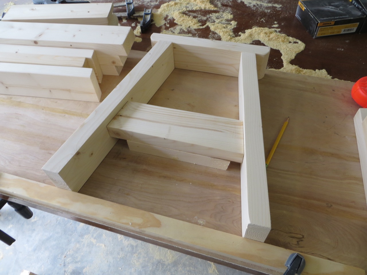 The bottom 3 boards are 2×4’s that make up the legs & stretchers.