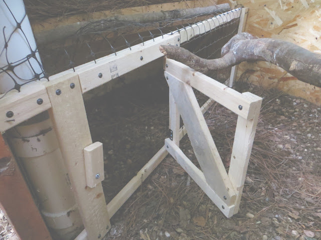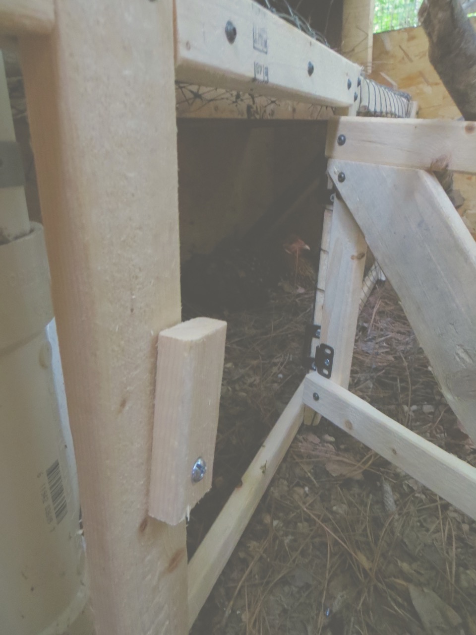 I used $4 worth of furring wood (2 1×2’s), leftover plastic deer fencing we used for the outer enclosure and hinges/screws I had on hand.