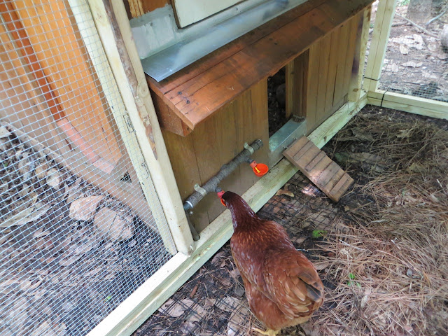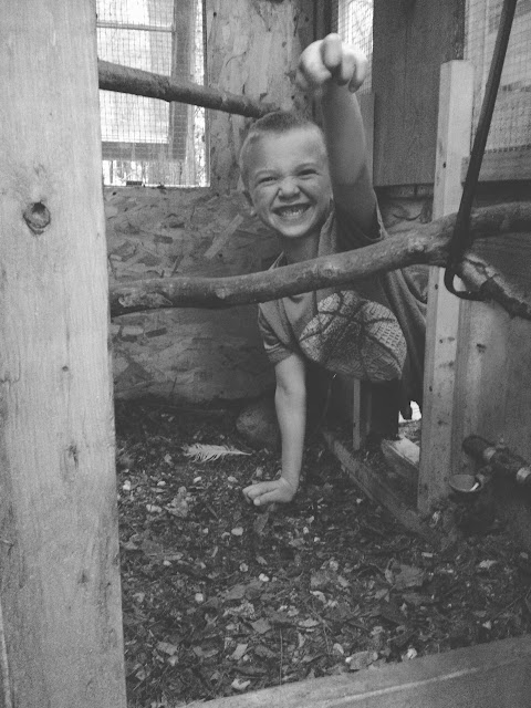 I was sneaky and got a picture of him crawling through the chicken coop to get out – hehe!