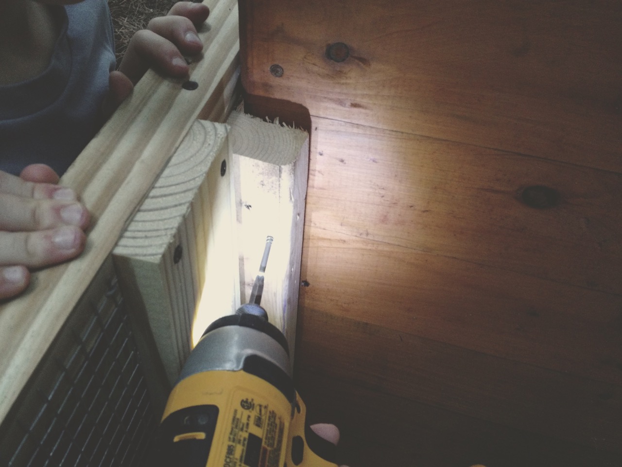 The only point the run attaches to the coop is from 2 screws on each side that are going through 2×4’s I added into the framing of the run.