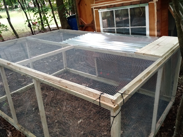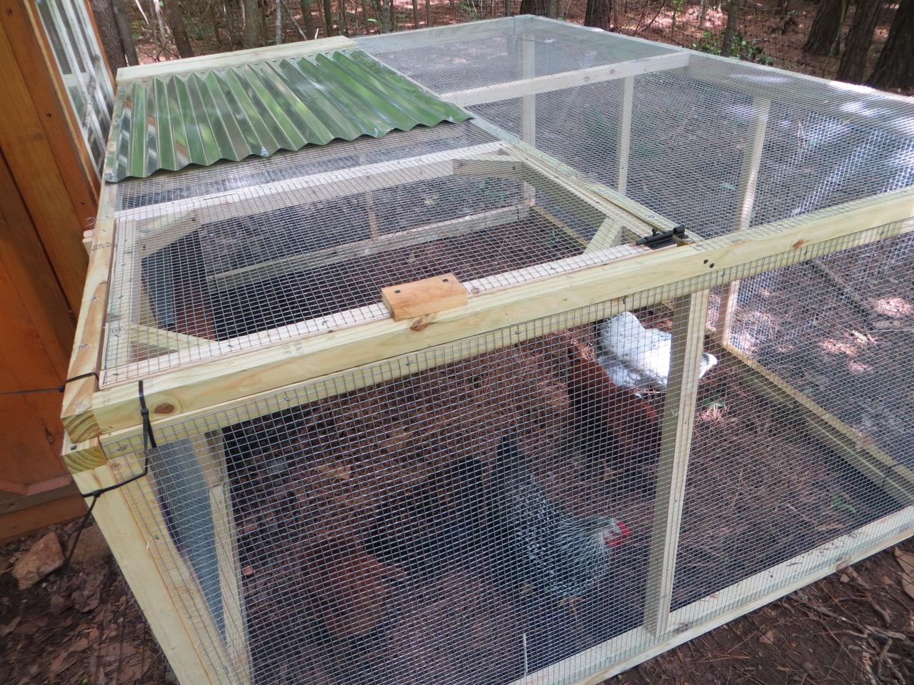 This post will give you an idea of how to build a large chicken run in less than a day for around $150. One thing I really like is all the pieces can be taken apart and put up again in less than an hour and stored flat.