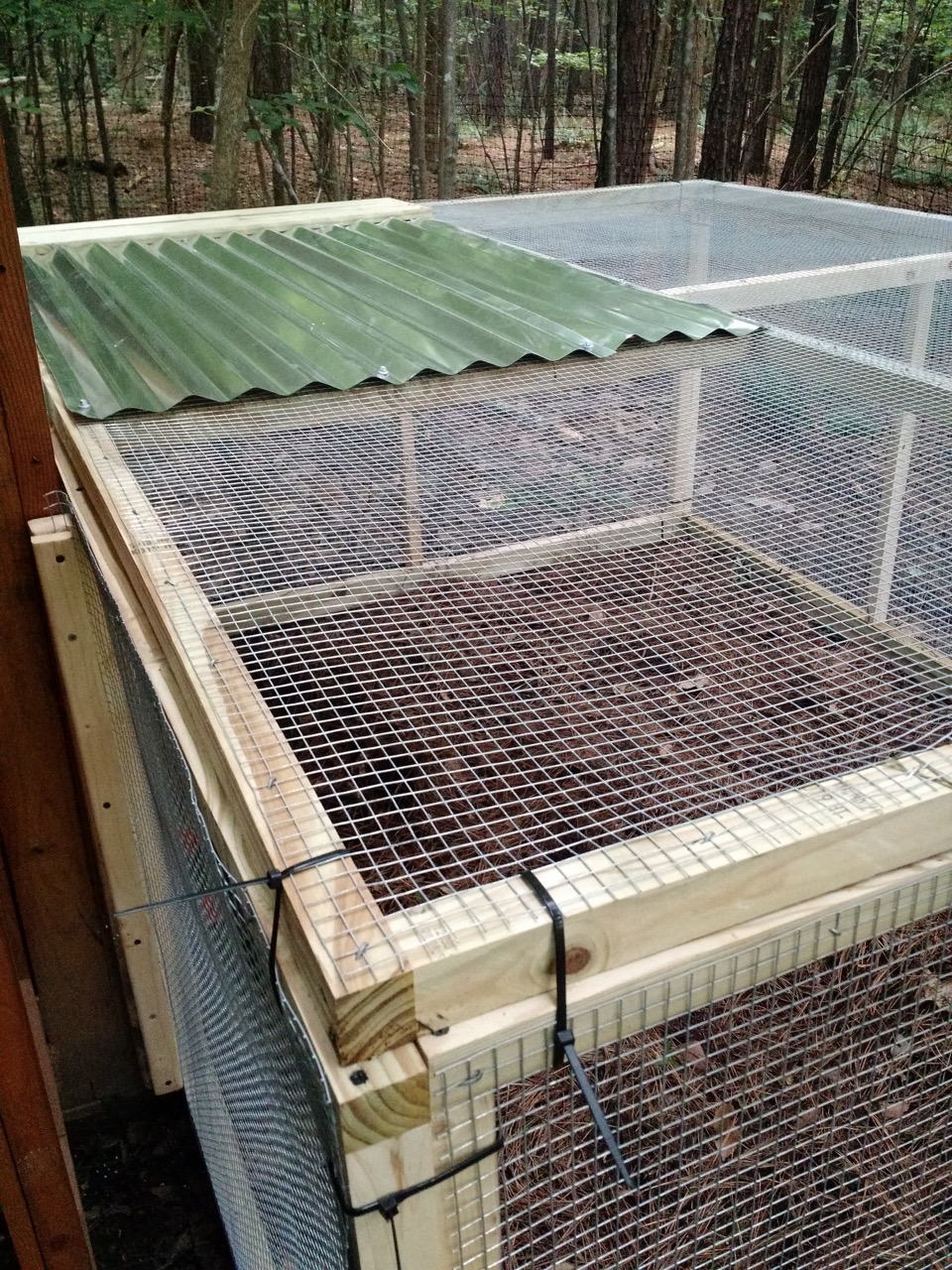 Here the top is complete. My son stayed inside the run while we attached the top so he could help push the zip-ties back through to me.
