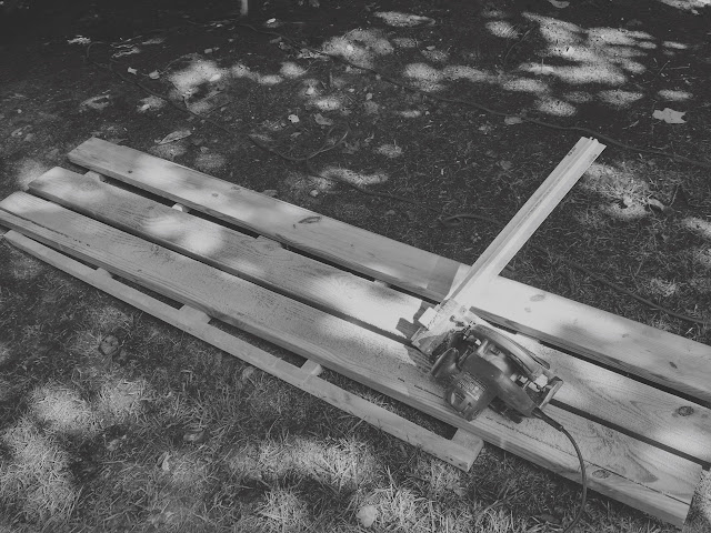 I cut lumber into strips for framing (cheaper than buying a bunch of 2×2’s). I probably used 5 or 6 2×6’s to get enough strips I needed. I also had a 2×4 I used for where the run would hug the sides of my chicken coop and I could screw the run to the coop.