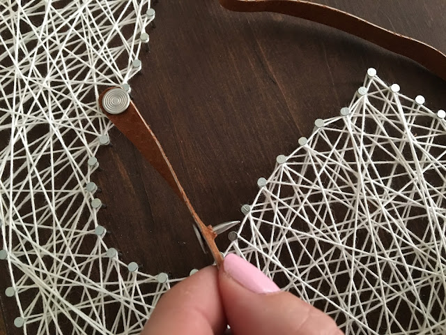 Add more fullness if you want by going back with longer zig-zags in a random fashion. The very last step is to go around the border of your design by wrapping it around each nail head.