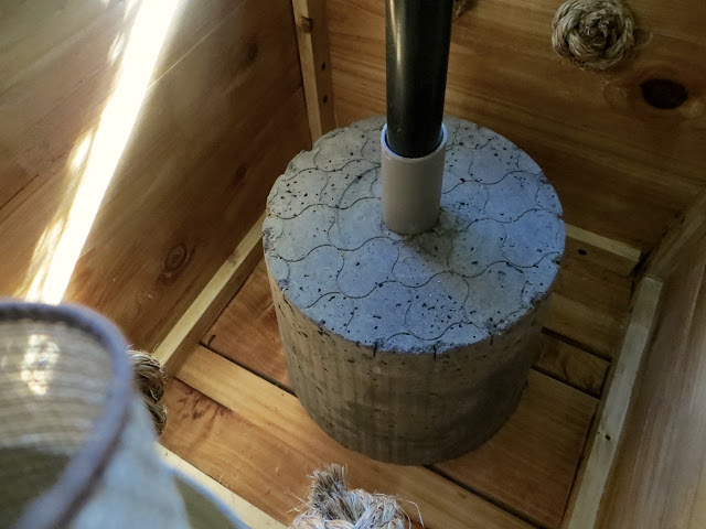 I felt very lucky that I had this perfect-sized plastic flower container in our shed and this extra leg from a plastic shelf we were no longer using.