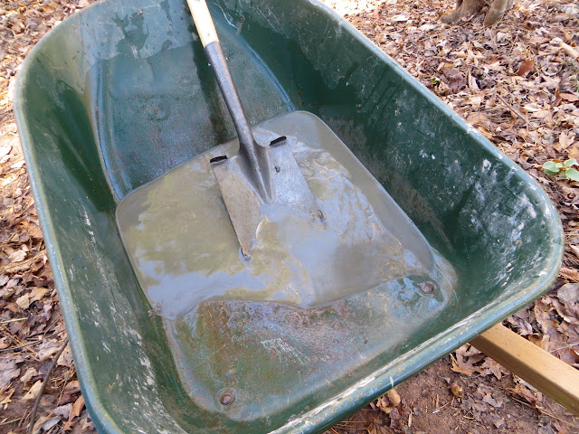 I poured 90% of the cement bag into our wheelbarrow and reserved 10% incase I added too much water.