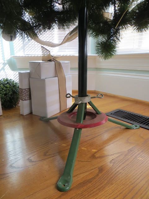 The legs on the metal base stick out so far that if I built something to accommodate them there wouldn’t be any room for presents under the tree! I also didn’t like the metal legs on our wood floors.