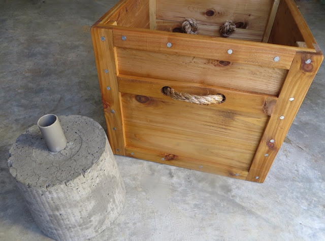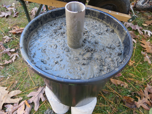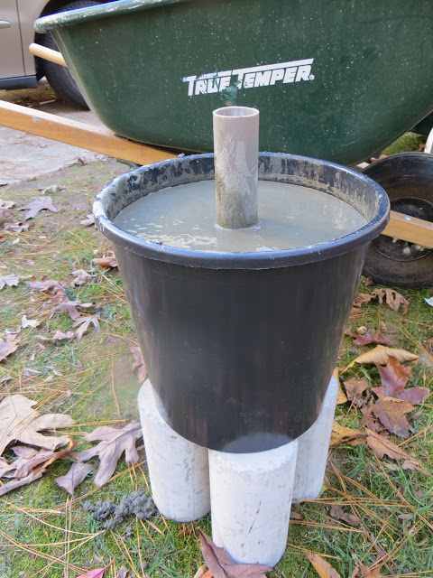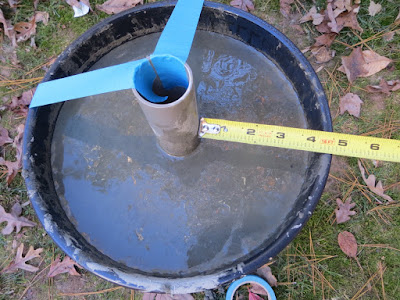 *plastic is ideal for the mold because you can drill a hole for your center post and break it if needed to get your cement out