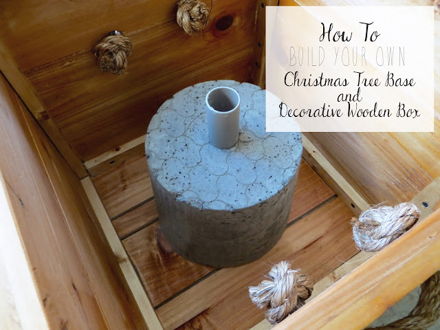 I saw an idea where someone made their own base so they could make a smaller box for the tree to sit in. I made my base out of cement – it’s definitely sturdy and it cost under $4 to make! I know what you’re thinking, “I CAN’T do cement!” I’m here to tell you that if you can make cookies with 2 ingredients… YOU can do cement!