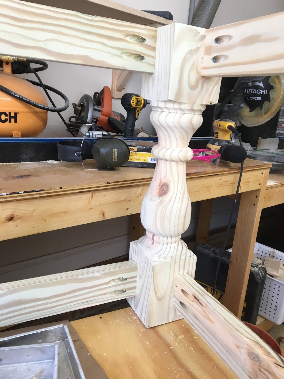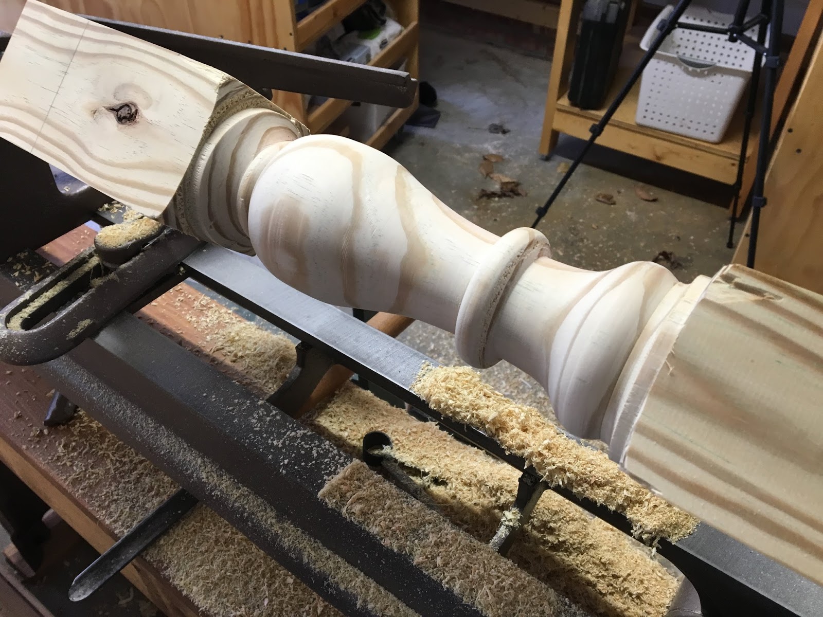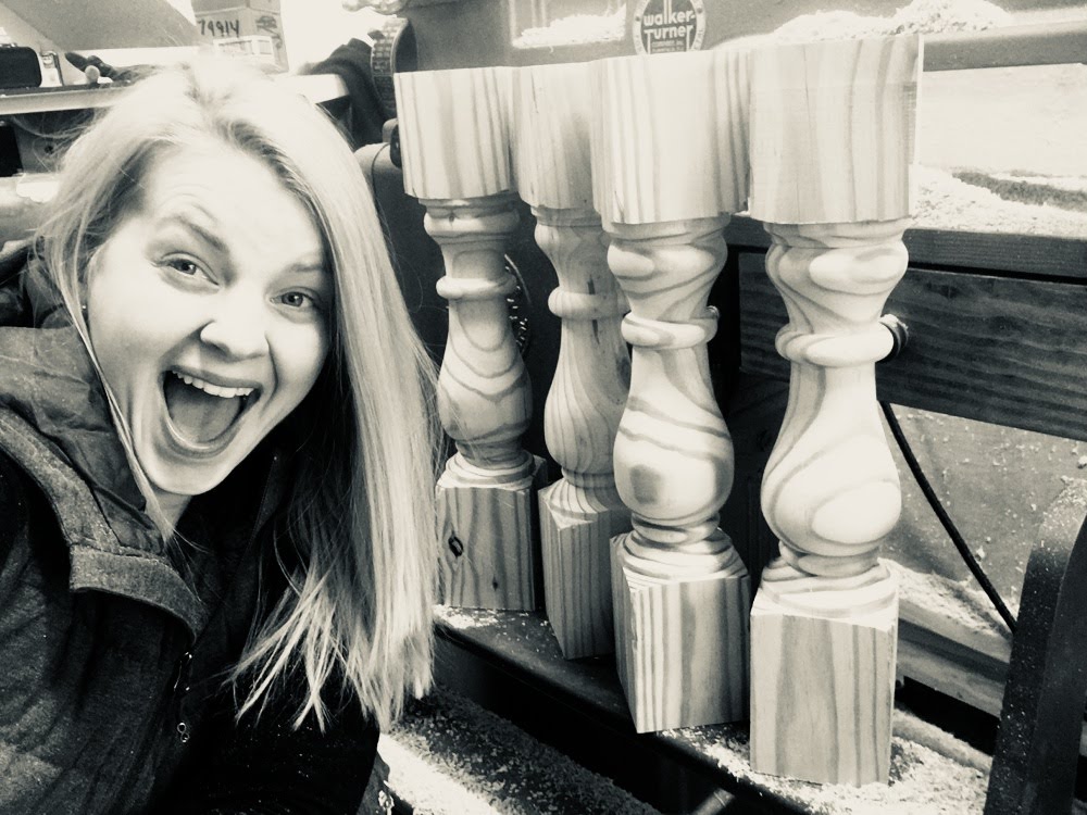 I started with the legs by using the 4×4’s that I machined down to 3×3. I’m new to turning so I cut slowly and reworked everything over and over until it looked/felt right – some parts were rough but overall I was super excited! I cut the post down to a final 18″ length.