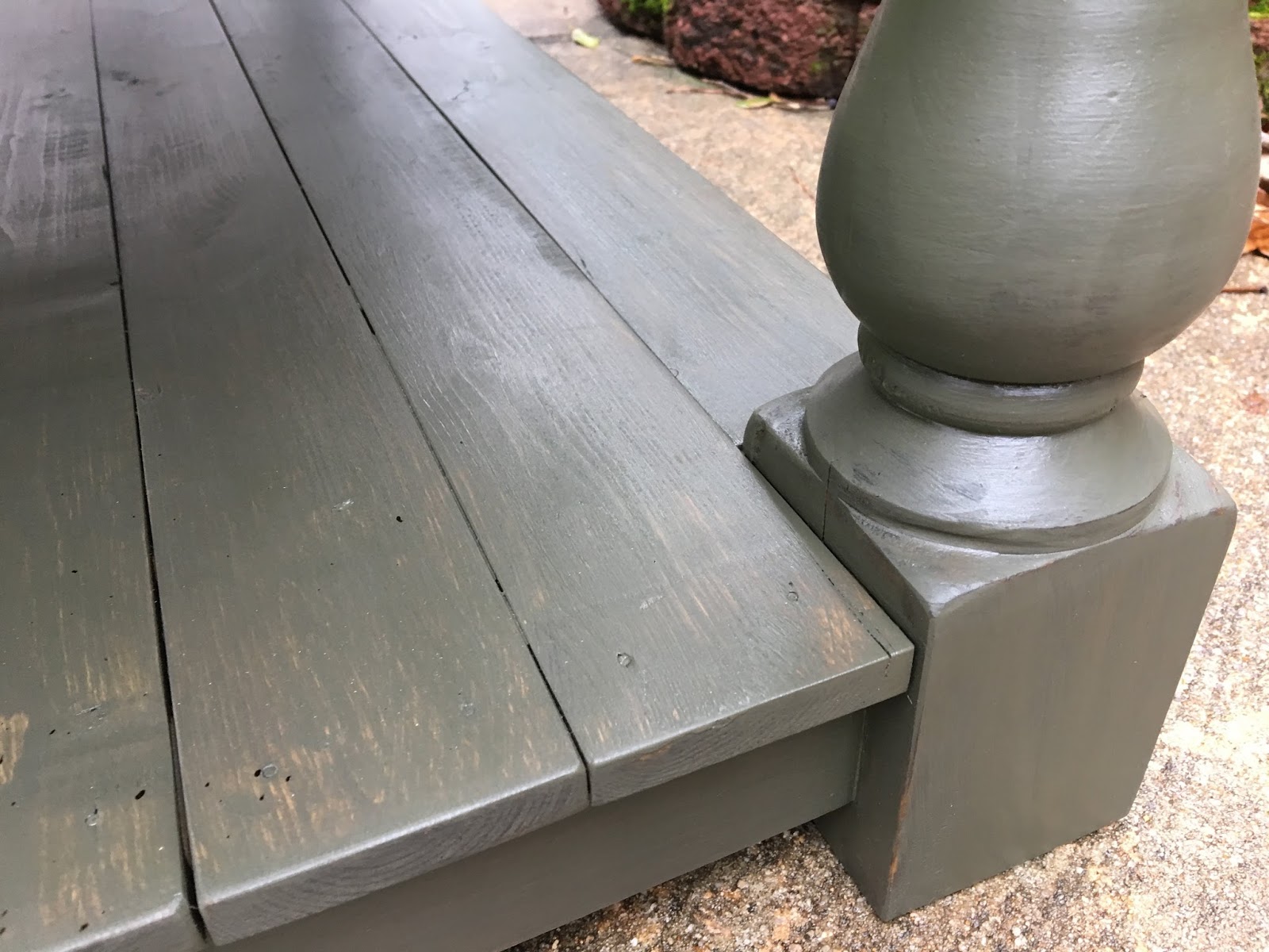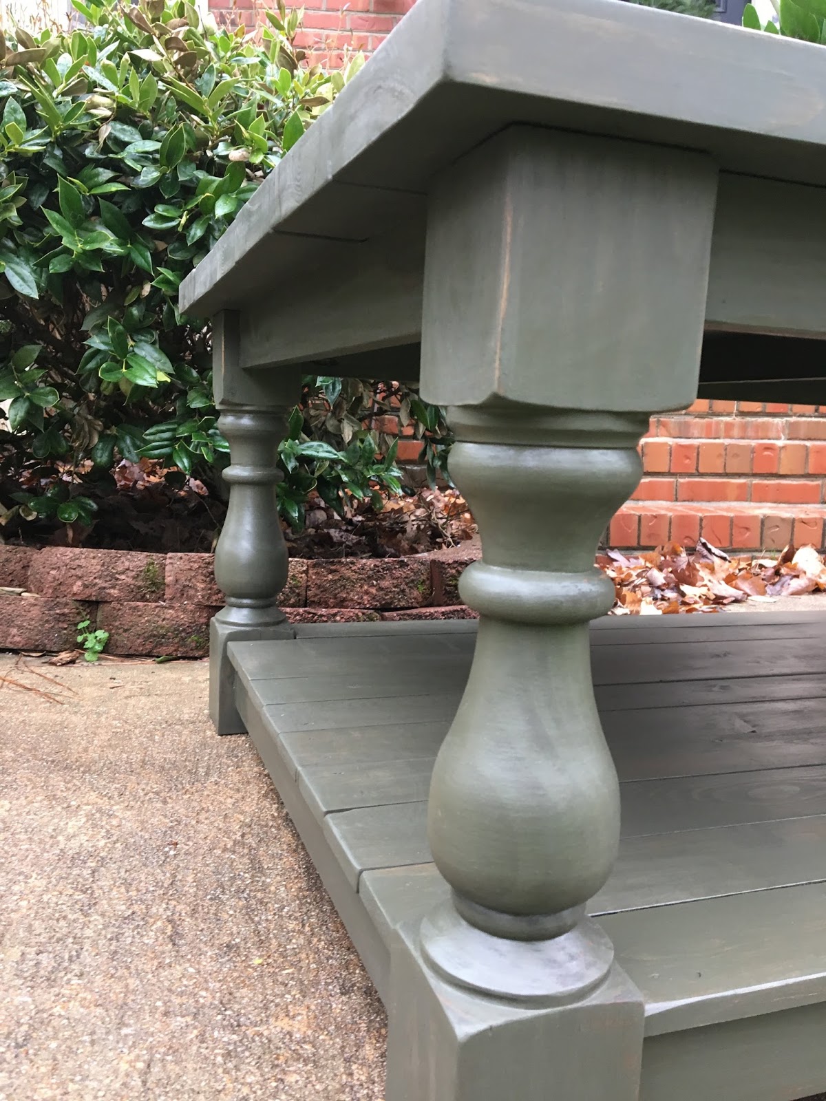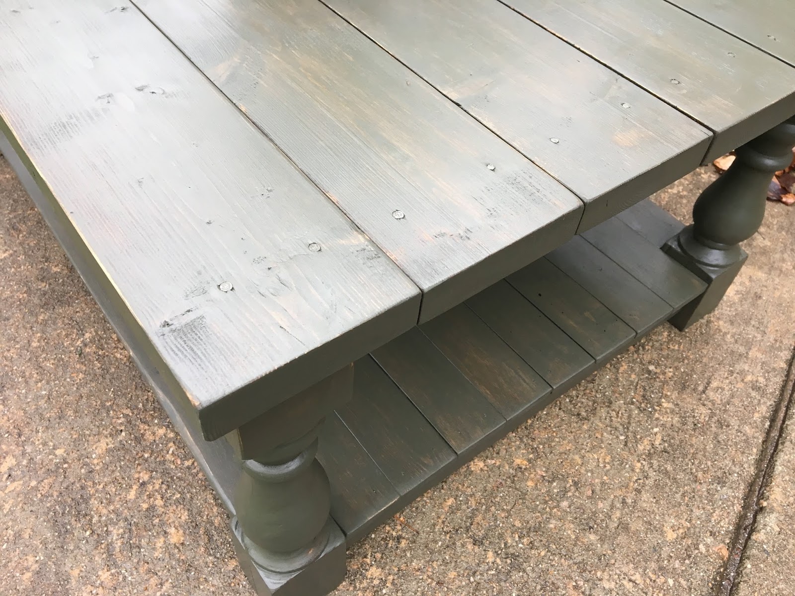 I stained the table a Dark Walnut and went over it with a very light coat “dry brush” of sage green paint.
