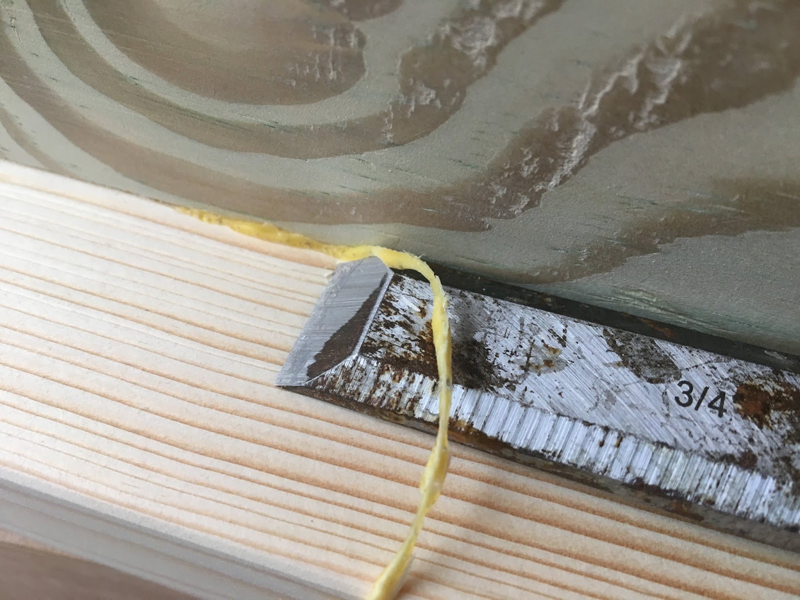 TIP: I don’t wipe my glue when it’s wet because it smears all over and it’s difficult to sand away in corners. I wait about 4 hours and go back with a sharp chisel and cut it away while it’s still pliable but not gooey. If you wait until the glue is hardened completely it’s more difficult.