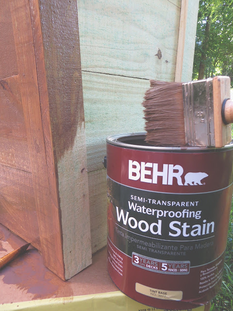 I used Behr Waterproofing Wood Stain for the first time (tinted to their Chocolate Shade). I wasn’t please with the color – it was dull and bland – very matte looking! I couldn’t live with it so once it dried I went over it with my trusty Flood (cedar-toned) stain I’ve been using lately. I was worried about the different brands being ‘mixed’ but I took the chance. The Flood gave it a warm-darker tone and it dried within a couple of hours!