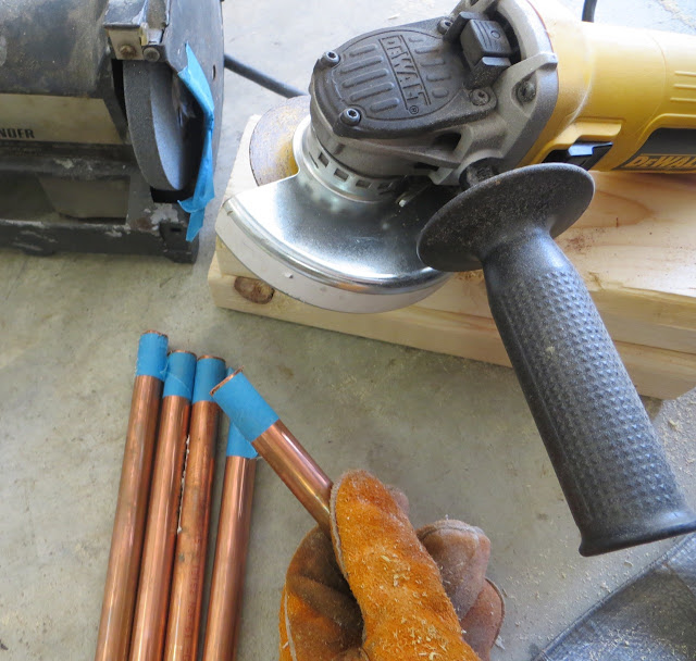 I measured from the clean-straight edge to mark my other ends with the precise length. I used painter’s tape to mark around the entire pipe at that mark. This gave me a defined line to grind up to on all sides.