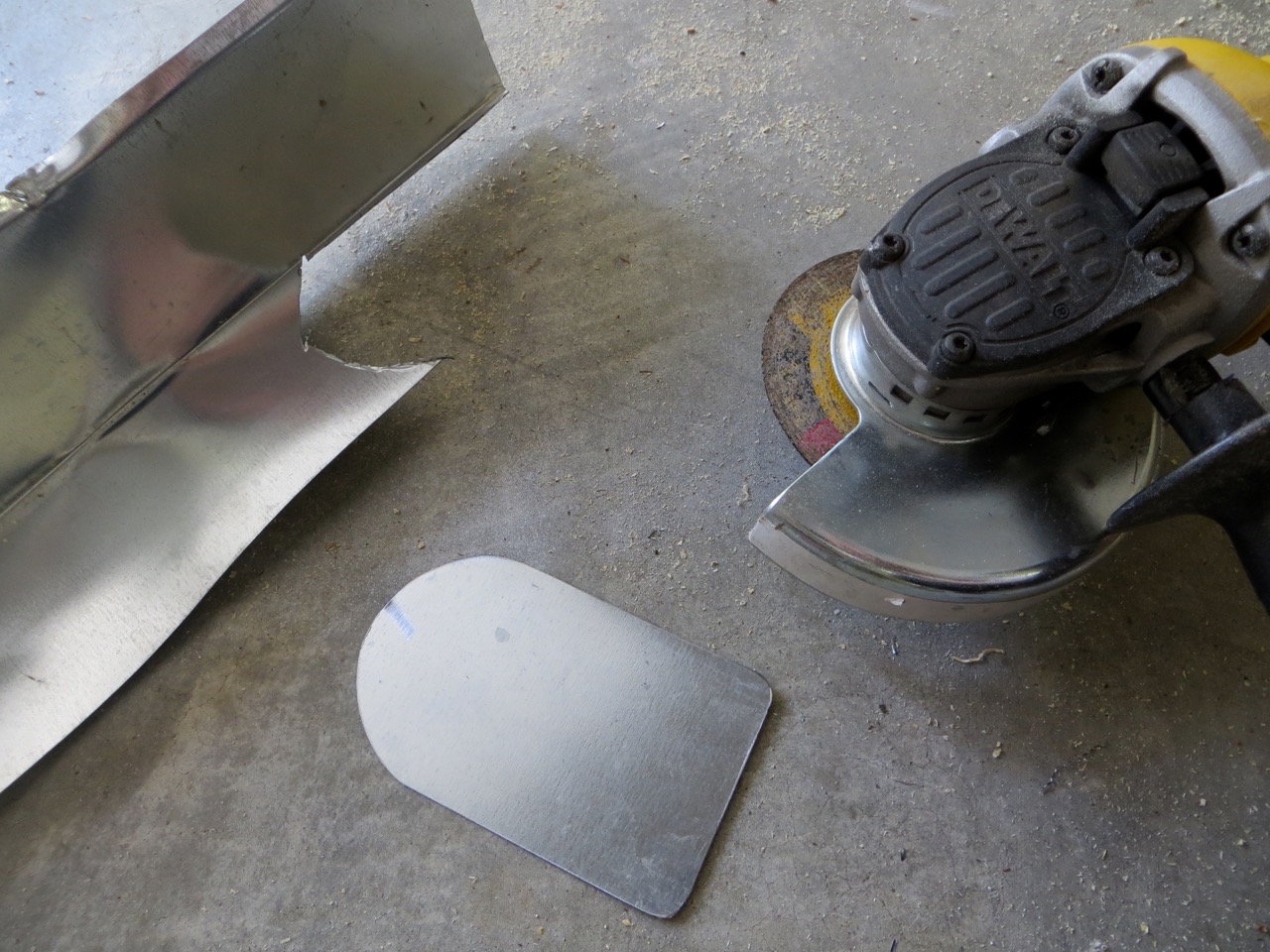 I had some scrap galvanized metal roofing trim so I used my metal grinder to rough cut a shape for the wind catcher. I used the bench grinder to smooth out the shape and de-bur.