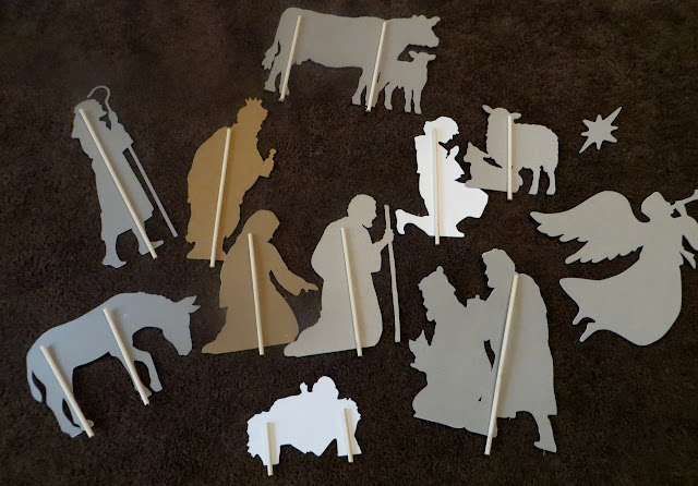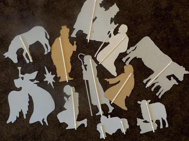 I really love how the silhouettes are leaning in, kneeling or bowing to show respect/love for Baby Jesus.