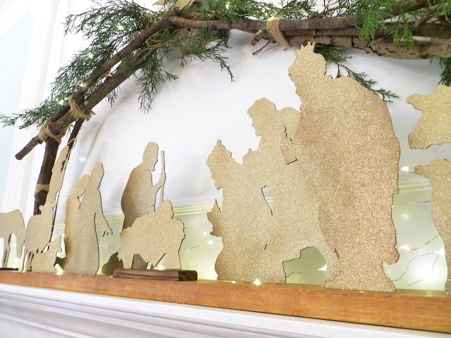 We didn’t have a proper nativity and I wanted something big and bold – a statement piece – that reminds us everyday the true meaning of Christmas. This turned out better than I imagined and it’s much bigger looking in person – spanning nearly our entire mantle!