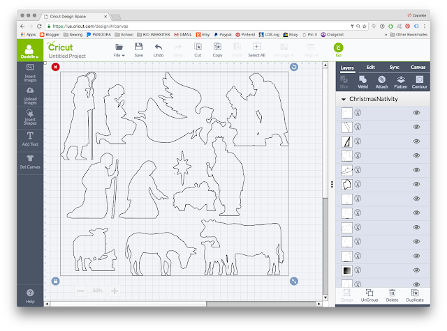 There are a few silhouettes with cutouts between the legs and such where you’ll need to select all the pieces together for that silhouette and ‘attach’ them together on the top of the screen. Your right column should show that you have 12 groupings/images total for cutting.
