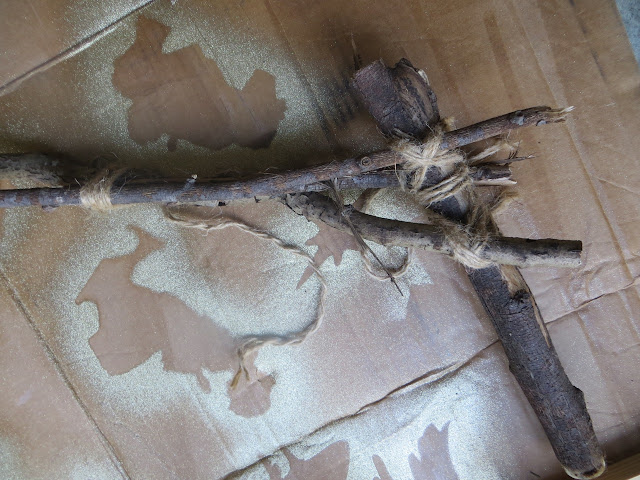 Gather some branches and your twine. This is where you get to be creative! TIP: I knew I wanted the branches that made the sides of the manger to have a ‘pocket’ in the wood base to rest in to keep from moving around so I made sure I had a forstner bit the same size before I started assembling.