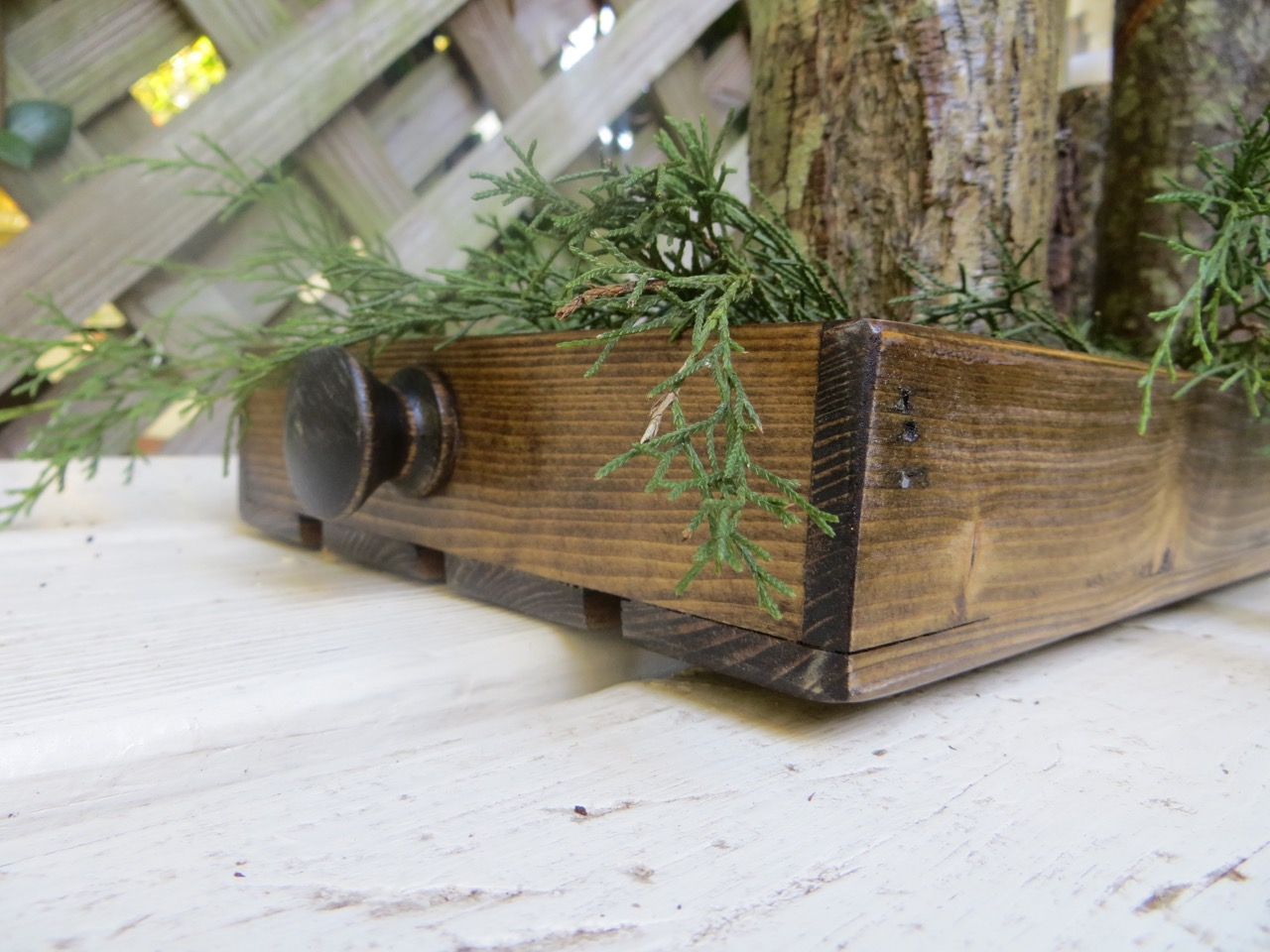 I used Minwax Dark Walnut stain to stain my tray. After it dried I used a fine sandpaper to smooth out any roughness.