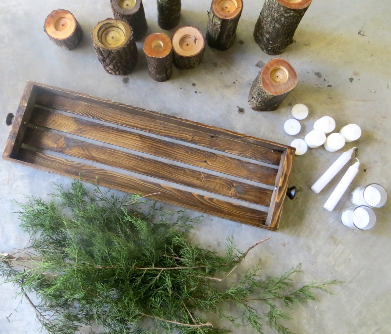 *I recommend buying candles that are 2″ or less in diameter (you’ll need a forstner bit the same size as the base of the candle for drilling in your branches).