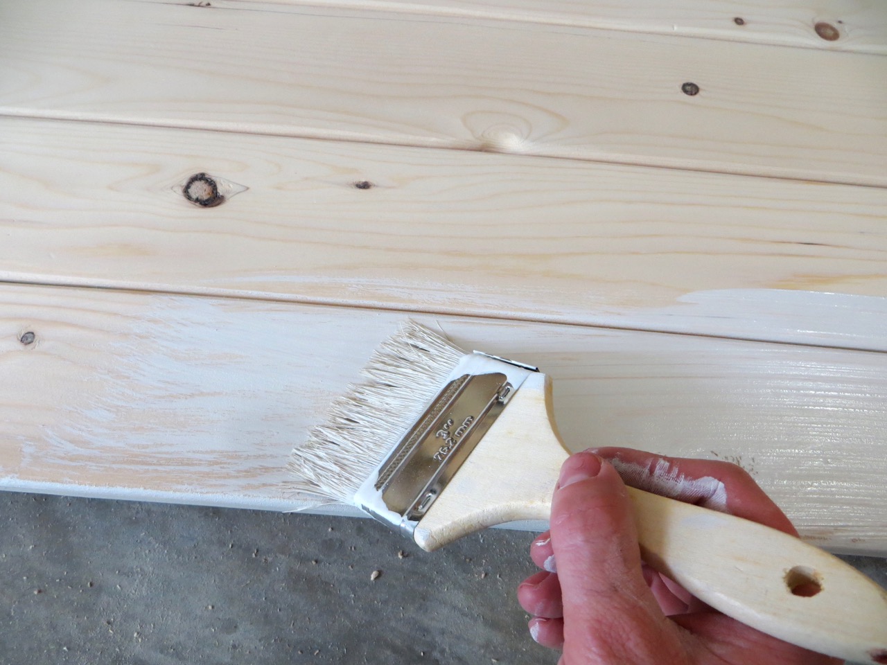 I watered down my flat-latex paint a little so it wouldn’t cover up the character of the wood underneath.