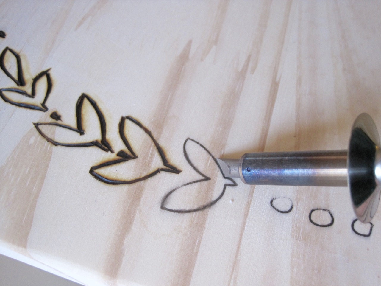 Make sure your wood burning tool is hot and get to work burning your image. It takes a little patience!